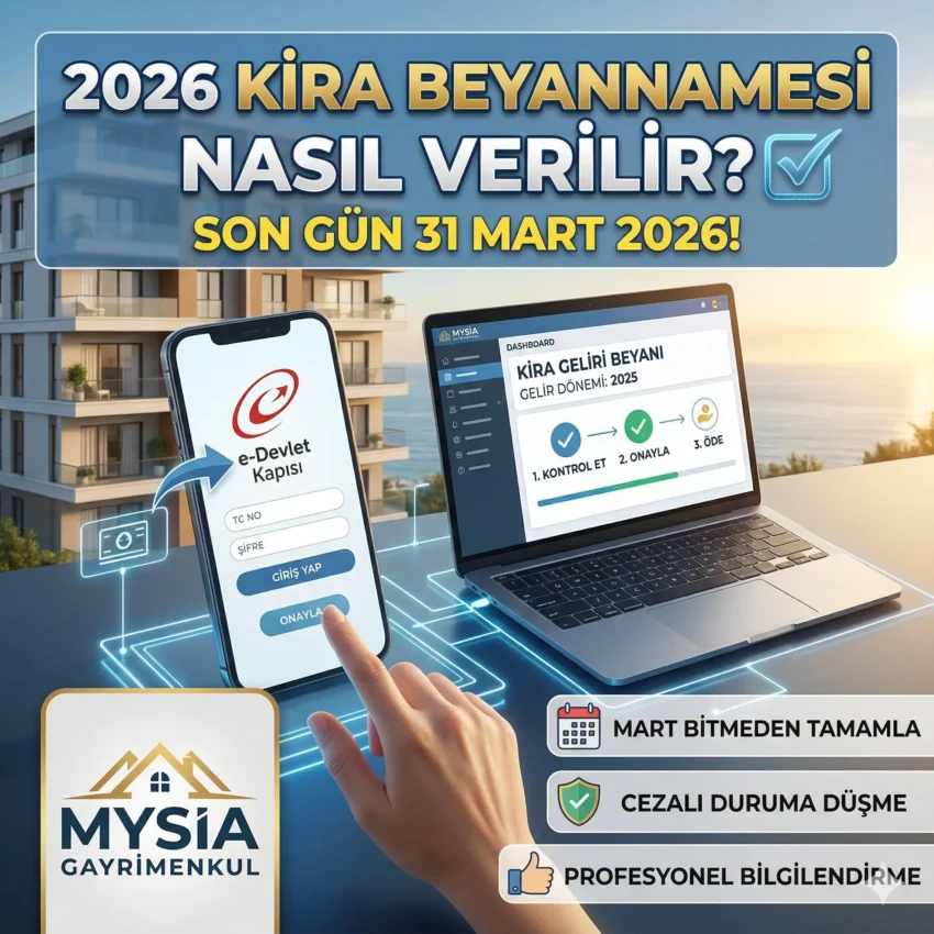 Mülk sahipleri için yılın en kritik vergi dönemi olan Mart 2026 geldi çattı. Çünkü 2025 yılında elde ettiğiniz tüm kira gelirleri için beyanname verme zorunluluğunuz bulunuyor. Kira beyannamesi nasıl verilir sorusu, bugünlerde ev sahiplerinin en çok merak ettiği konuların başında geliyor. Mysia Gayrimenkul olarak biz, bu yasal süreci sorunsuz atlatmanız için en güncel bilgileri sizin için derledik.