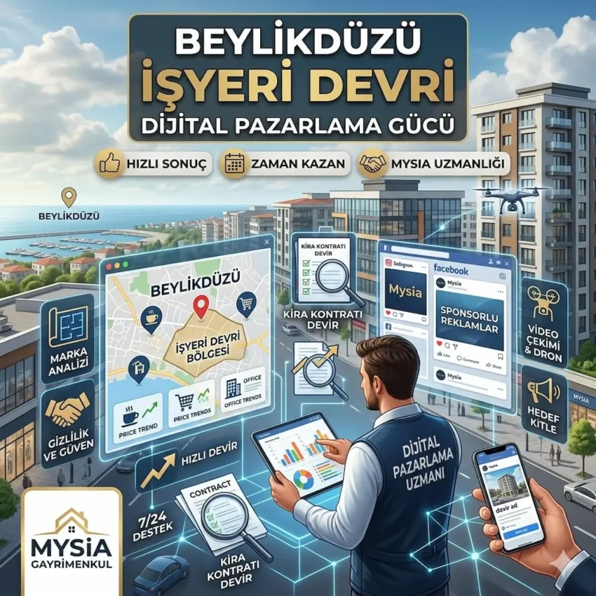 Siz de Beylikdüzü işyeri devri sürecinde sadece bir ilanla kalmak istemiyorsanız, bizimle hemen iletişime geçebilirsiniz. İşletmenizi dijitalin gücü ve Mysia Gayrimenkul güvencesiyle en doğru fiyata devredelim. Sonuç olarak, teknolojiyi kullanan ve bölgeyi tanıyan bir partnerle çalışmak, ticari geleceğinizi garanti altına alıyor.